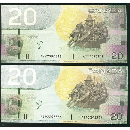 ERROR Lot of two 1991 $20 notes, both notes are slightl