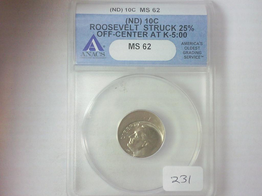 ERROR ROOSEVELT DIME 25% OFF CENTER ANACS MS62