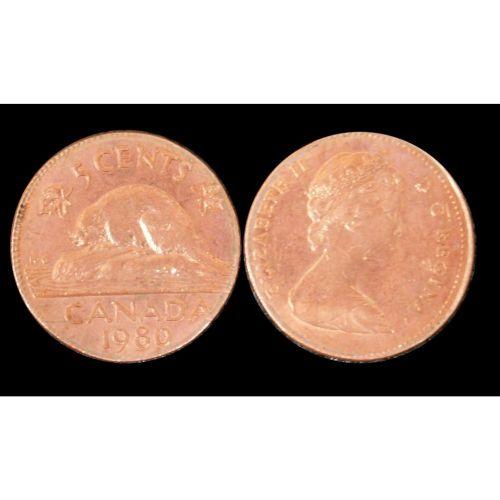 ERROR coins 1980 5 cents struck on planchet of 1¢