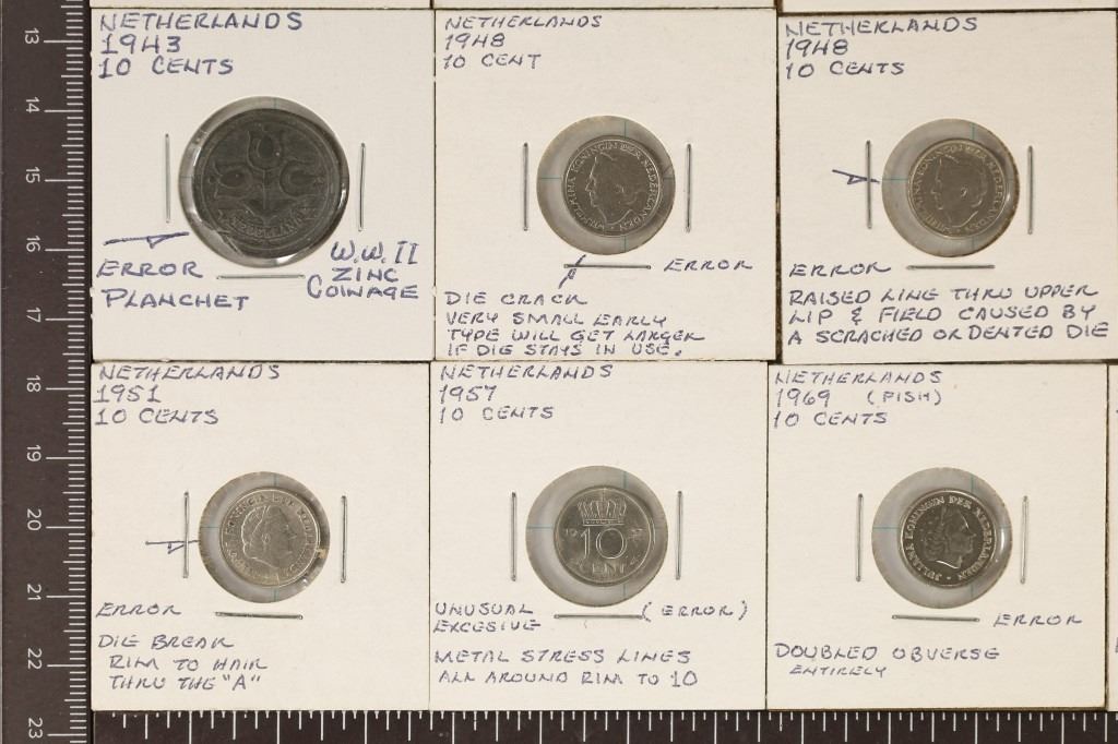 1916-1980, 1-1/2 CENT, 8-1 CENT, 1-5 CENT, 9-10 CENTS AND 1-25 CENT. ERRORS INCLUDE CLASHED DIES, DIE BREAKS, PLANCHET ERRORS AND OTHERS.