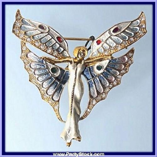 ERTE INSPIRED FAIRY PIN BROOCH 24K GOLD & CRYSTAL<p>Height: .5 Inch