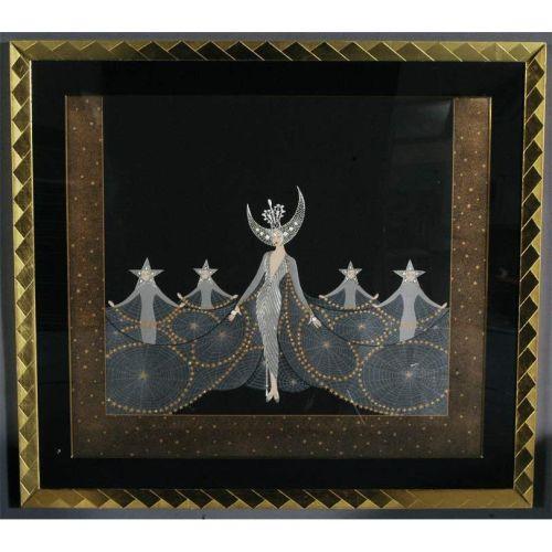 ERTE Queen of the Night 28"x 32" serigraph, 1987 with Chalk & Vermillion label verso, signed numbered 88/300 CONDITION REPORT: excellent- no damage or restoration. PACKING AND SHIPPING: offered by Fairfield Auction to points within Continental U.S.A. and excluding insurance (which will be required and added) $40 rolled w/o frame.
