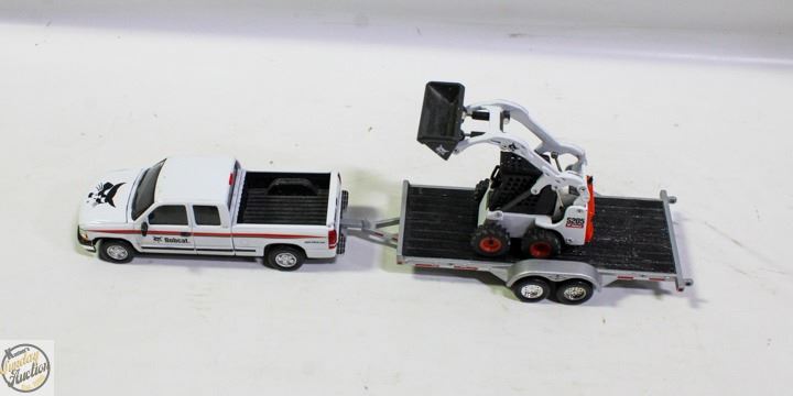 UTILITY TRAILER (LIFTS UP AND DOWN FOR ON/OFF LOADING) + BOBCAT LOADER 1/50 SCALE (3PC MATCHING METAL DIECAST SET) **ALL ITEMS MUST BE REMOVED BY 5PM SATURDAY, DECEMBER 6TH 2025. ALL REMAINING ITEMS WILL BE SUBJECT TO A $6.00 PER DAY STORAGE CHARGE. ANY ITEMS REMAINING AFTER MONDAY, DECEMBER 22ND 2025 WILL BE CONSIDERED FORFEITED. NO REFUNDS WILL BE ISSUED FOR FORFEITED ITEMS. TO SCHEDULE A PICK UP APPOINTMENT CLICK HERE