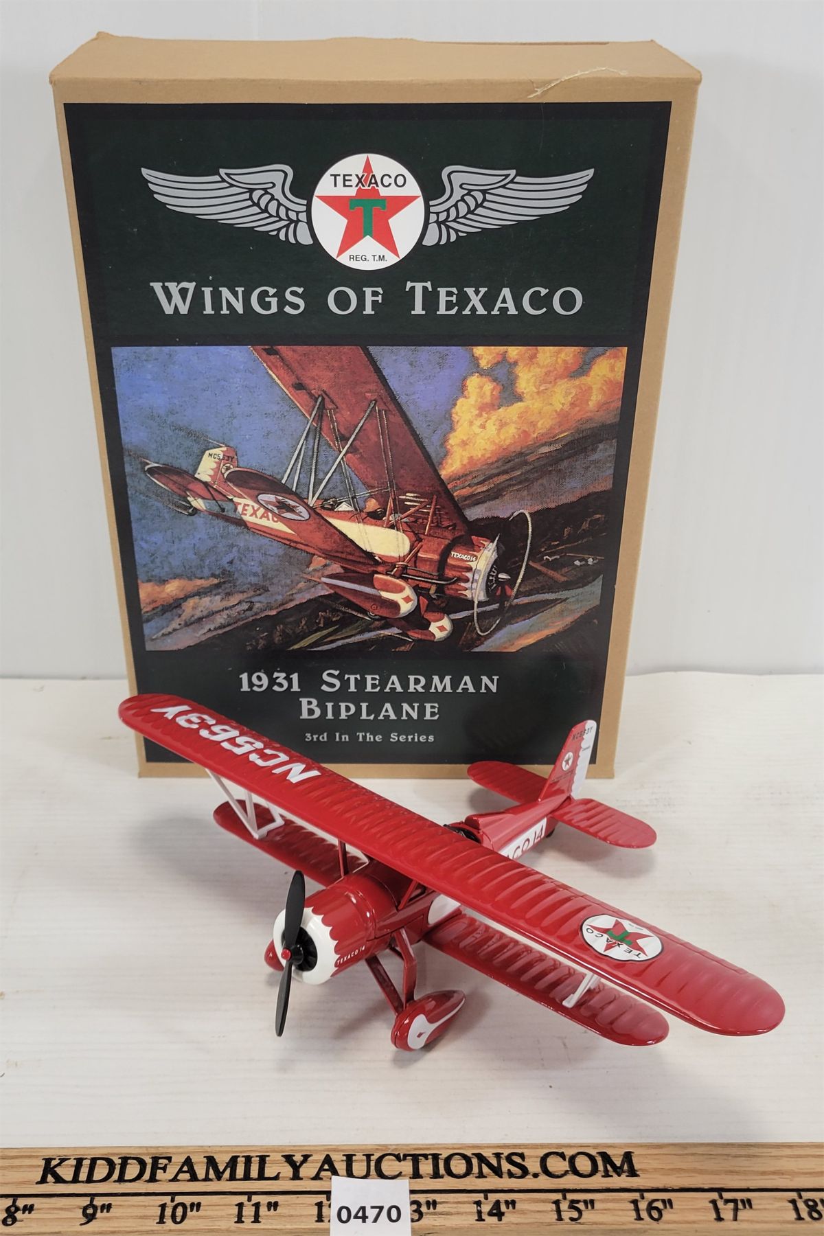 NOTE: APPEARS AS NEW. DIECAST 1931 STEARMAN BIPLANE W/ BOX.