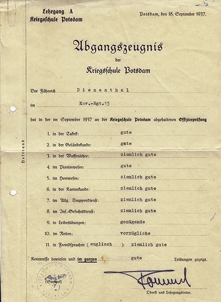 (1891 - 1944) German field marshal whose Afrika Corps threw back repeated British and American assaults in North Africa, later he defended Normandy and ultimately was forced to commit suicide due to his implication in the Hitler bomb plot. Partly-printed D.S. "Rommel", 1p. legal folio, Potsdam, Sep. 18, 1937, a report on the grades earned by student "Dienenthal" of Cavalry Reg. 13 at the Officer's Examination held at the Potsdam Military School. Boldly signed, file holes at left, else very good.