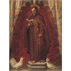 ESCUELA ESPAÑOLA, PP. S. XVIII. "Sto. Domingo de la Calzada" Óleo/lienzo. 95 x 71,5 cms. Sto.Domingo de la Calzada es patrón de los Ingenieros de Caminos.