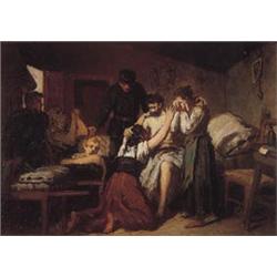ESCUELA ESPAÑOLA, S. XIX."La despedida" Oleo/tabla. 17 x 21 cms. Salida Euros 480 - Salida PTS 79.865