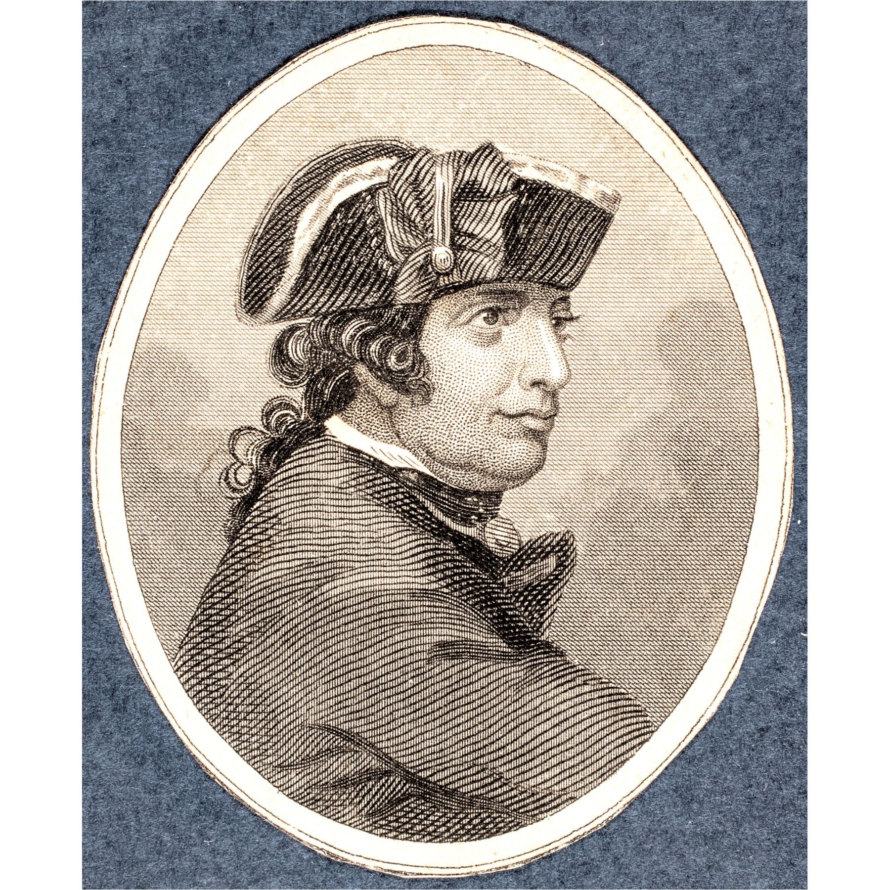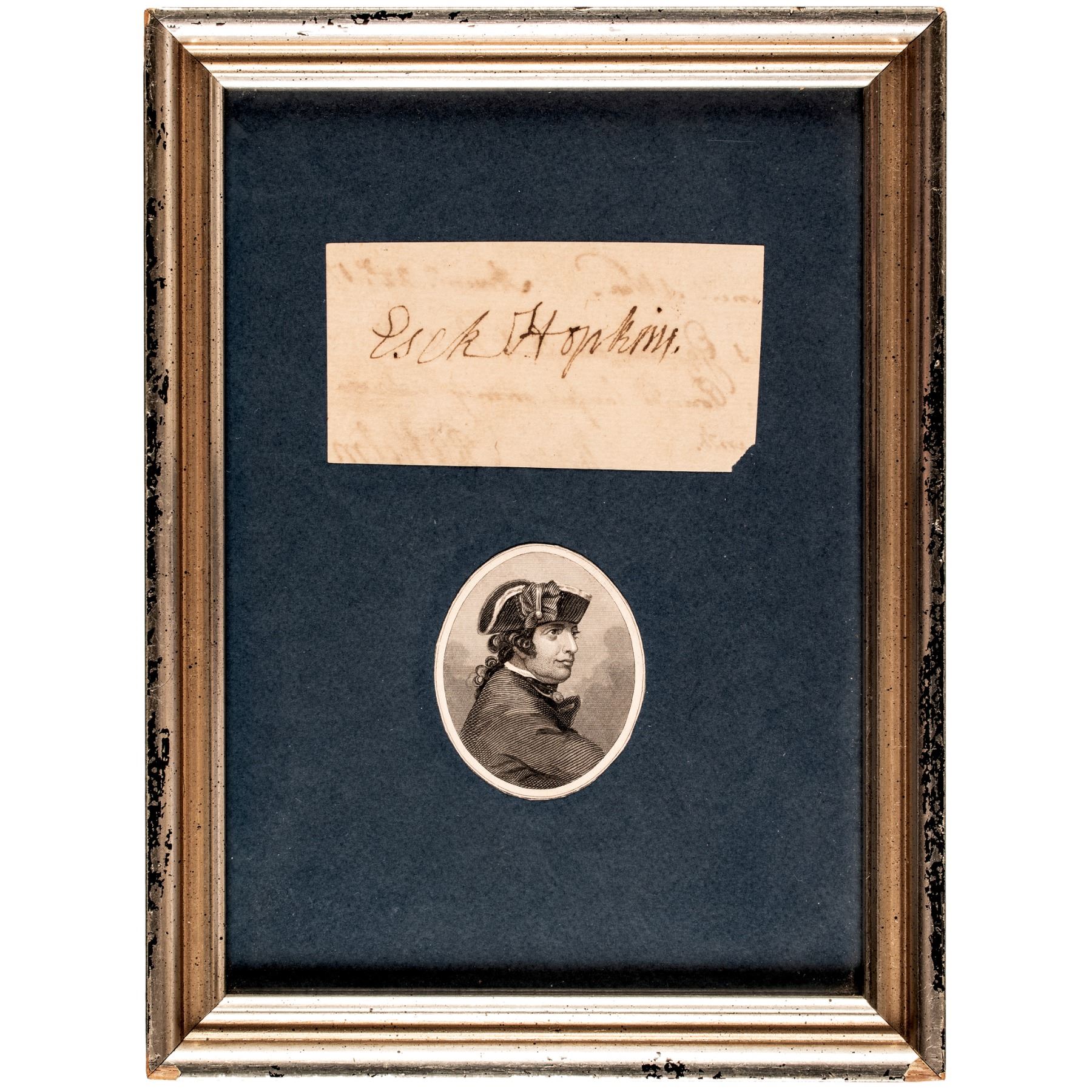 ESEK HOPKINS, Framed Clipped Signature with Portrait of Esek Hopkins