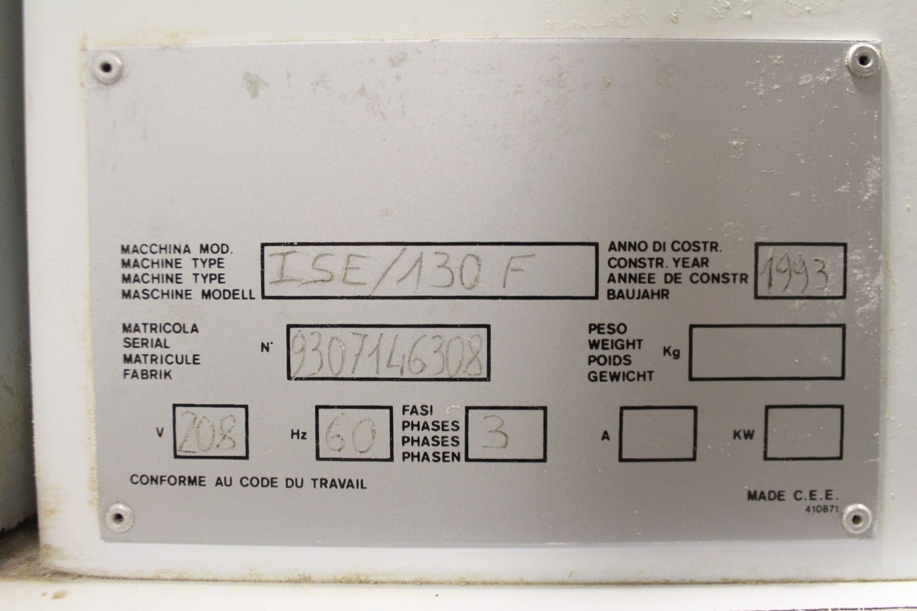 MODEL: ISE 130F. 208V, 3-PHASE. 130KG CAPACITY, 75KG FLOUR CAPACITY. APPROX. WEIGHT 1500LBS *TESTED / WORKS WELL. **ALL ITEMS MUST BE REMOVED BY 5PM MONDAY, FEBRUARY 6TH, 2023. ALL REMAINING ITEMS WILL BE SUBJECT TO A $6.00 PER DAY STORAGE CHARGE. ANY ITEMS REMAINING AFTER MONDAY, FEBRUARY 20TH, 2023 WILL BE CONSIDERED FORFEITED. NO REFUNDS WILL BE ISSUED FOR FORFEITED ITEMS.** TO SCHEDULE A PICK UP APPOINTMENT CLICK HERE