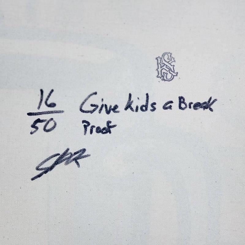 Espresso is limited edition hand pulled silkscreen unique mixed media on canvas by Andy Warhol protege Steve Kaufman (1960-2010). This piece is numbered and hand signed inverso and includes a letter of authenticity. As is common with Kaufman's works, this piece may have perceived minor flaws, but is in overall good condition. Measures approximately 25.5 x 25.5 before cropping.