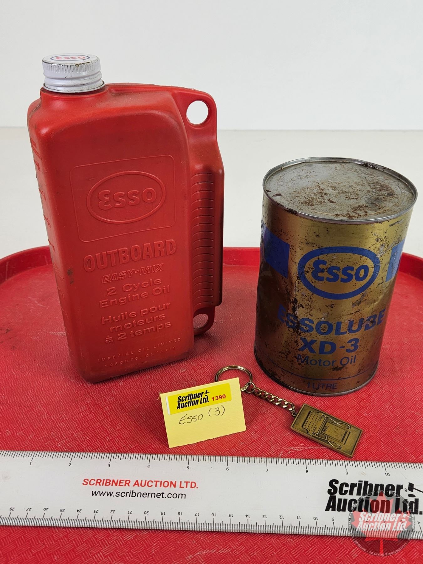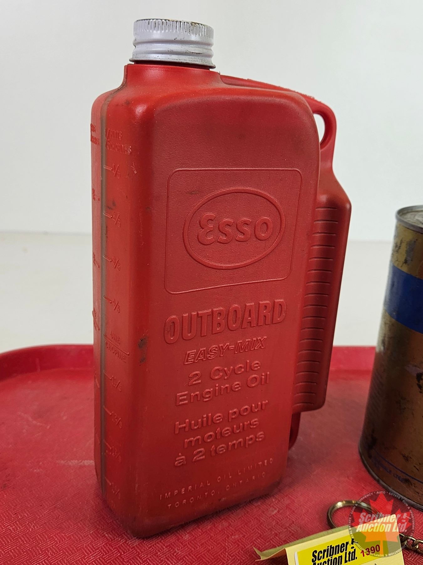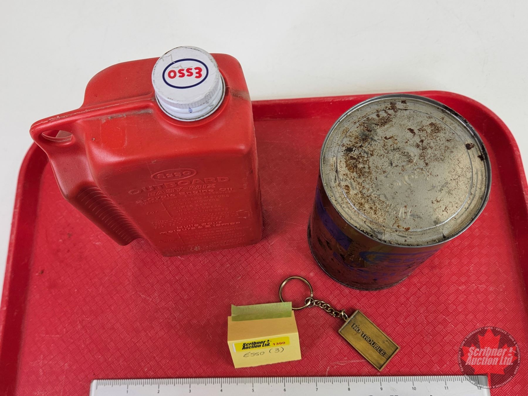 ESSO Combo (2): Outboard Motor Oil Bottle (FULL!) & Oil Can & Key Chain