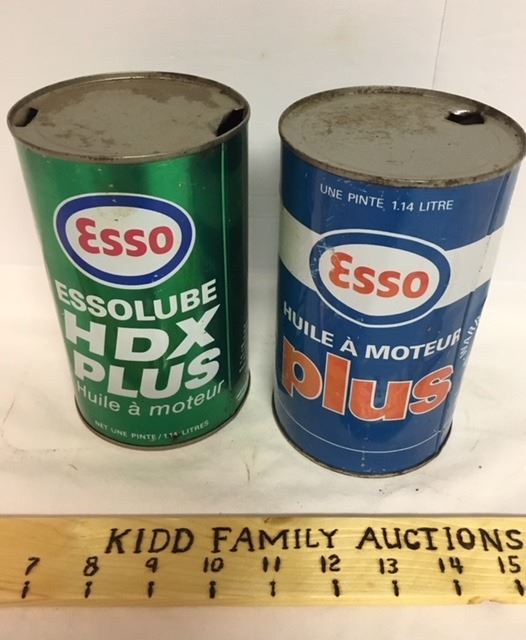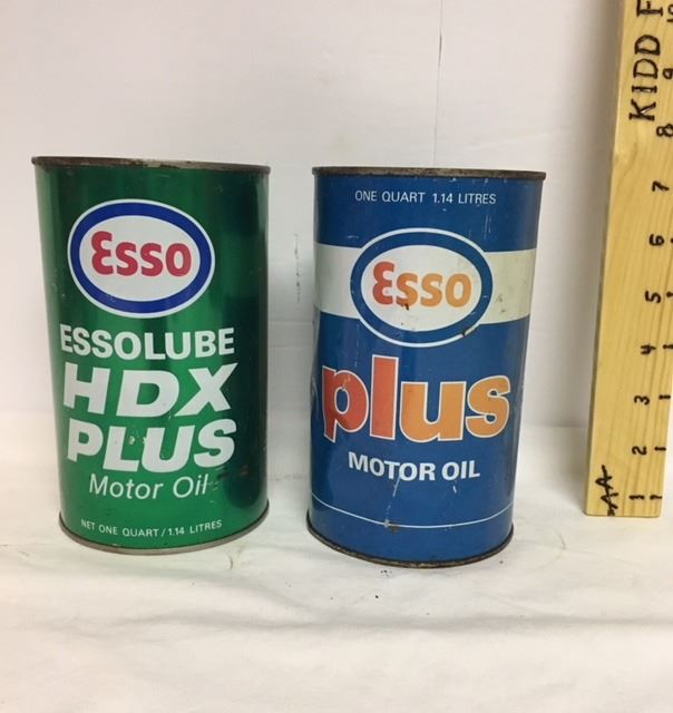 GR OF 2, ESSO MOTOR OIL, 1 QUART TINS, NEWER, VERY GOOD CONDITION.