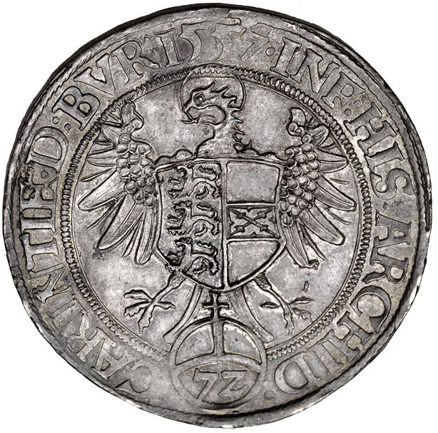 ESTADOS AUSTRIACOS. Fernando I (hermano de Carlos I). Infante de España. Taler. 1557. Klagenfurt. DAV-8022. EBC. Rara en esta conservación.