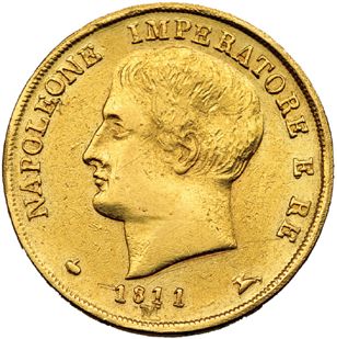 ESTADOS ITALIANOS. 20 liras. 1811. M. Napoleón. Milán. C-11. Pequeñas marcas. MBC+.