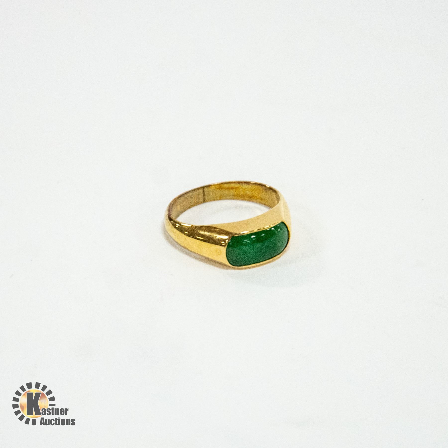 ESTATE 14K YELLOW GOLD JADE RING SZ 3