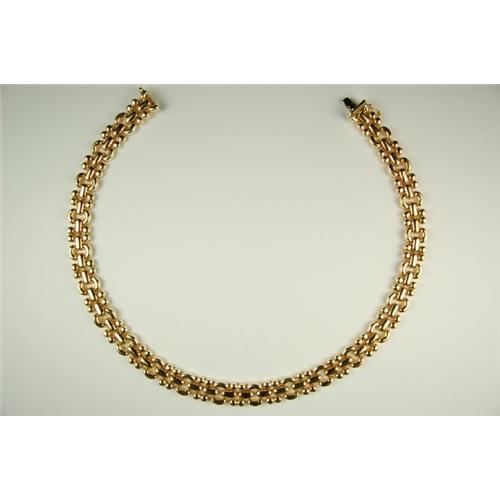 14k Yellow Gold Designer Necklace 16" in length with a very sturdy clasp. This Gold Necklace features a very beautiful link and it is 1/2" in width.