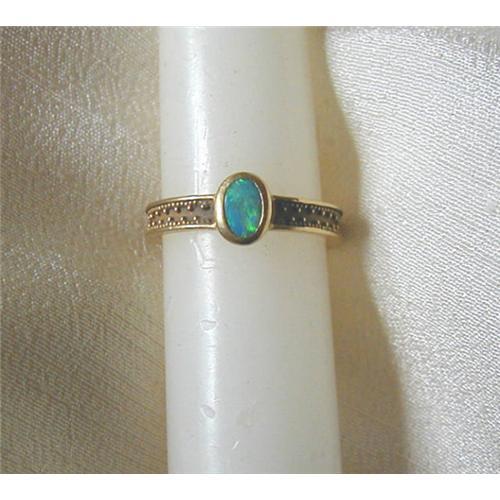<tr><td>Title:ESTATE 18K GOLD/OPAL ETRUSCAN GRANULATION RING</td></tr>