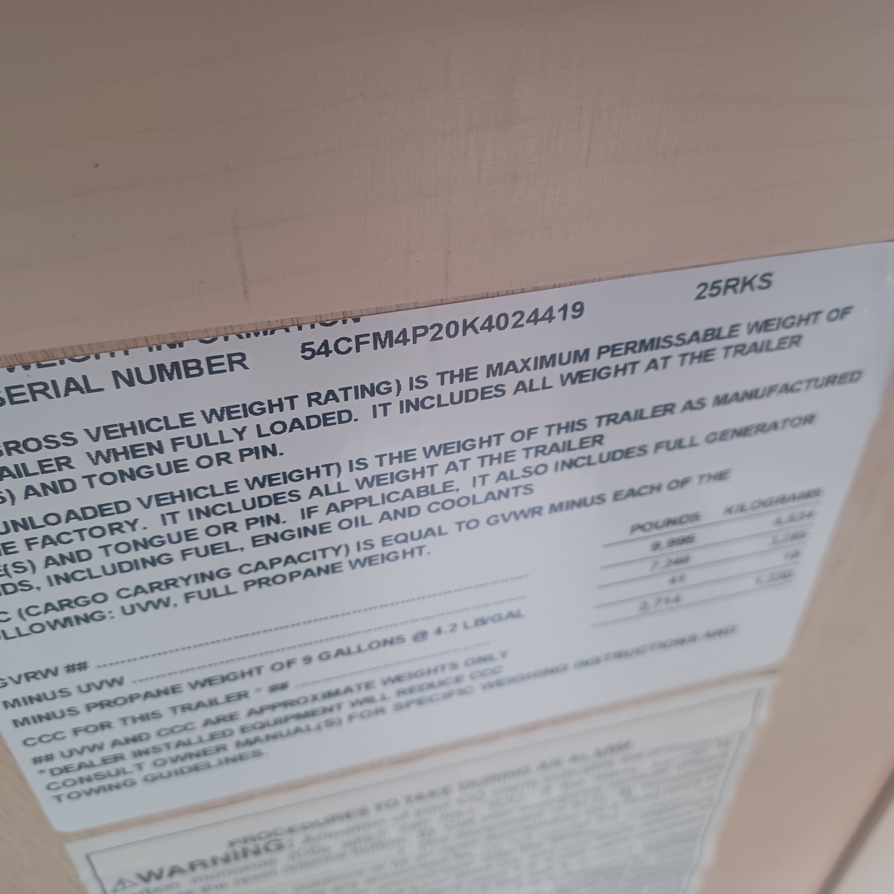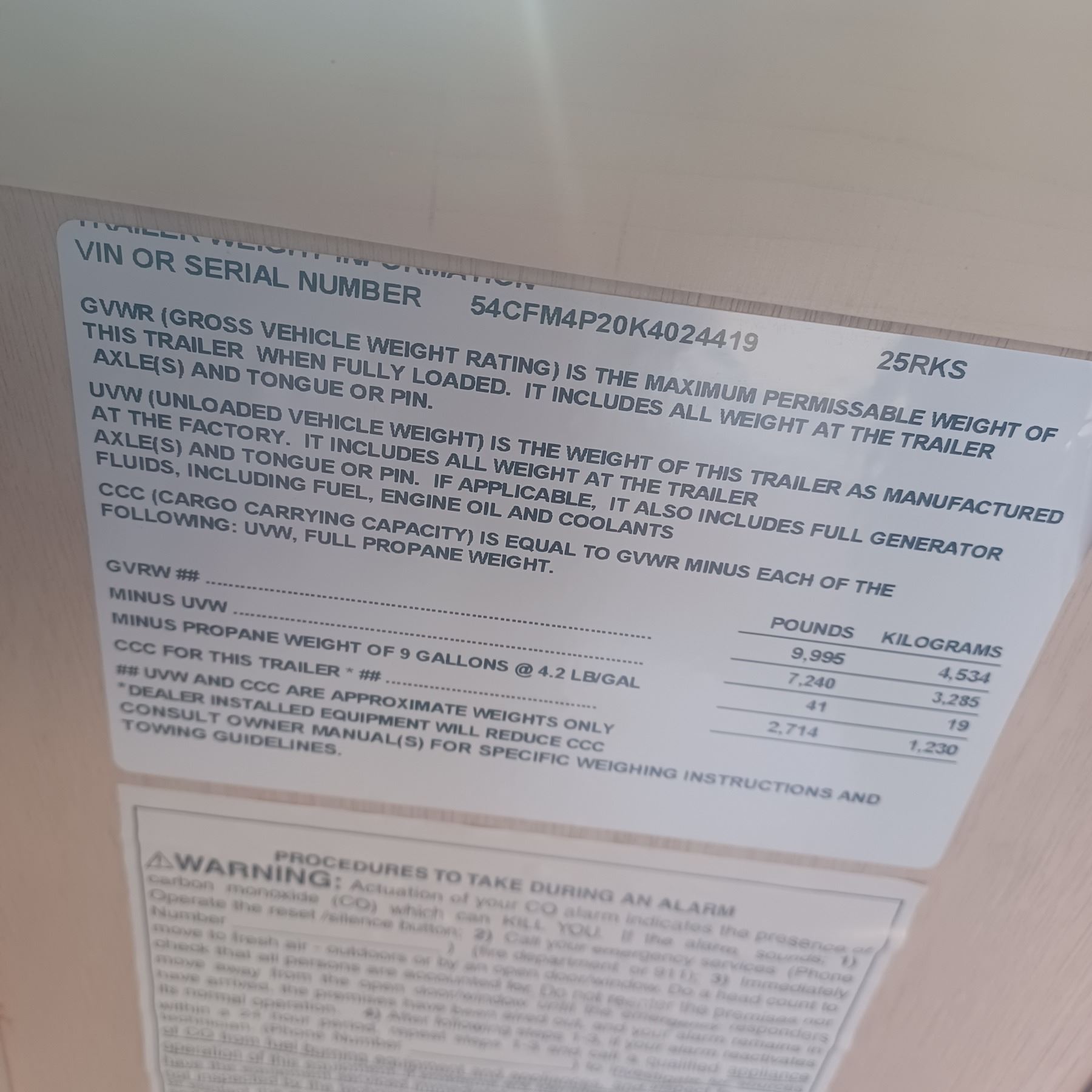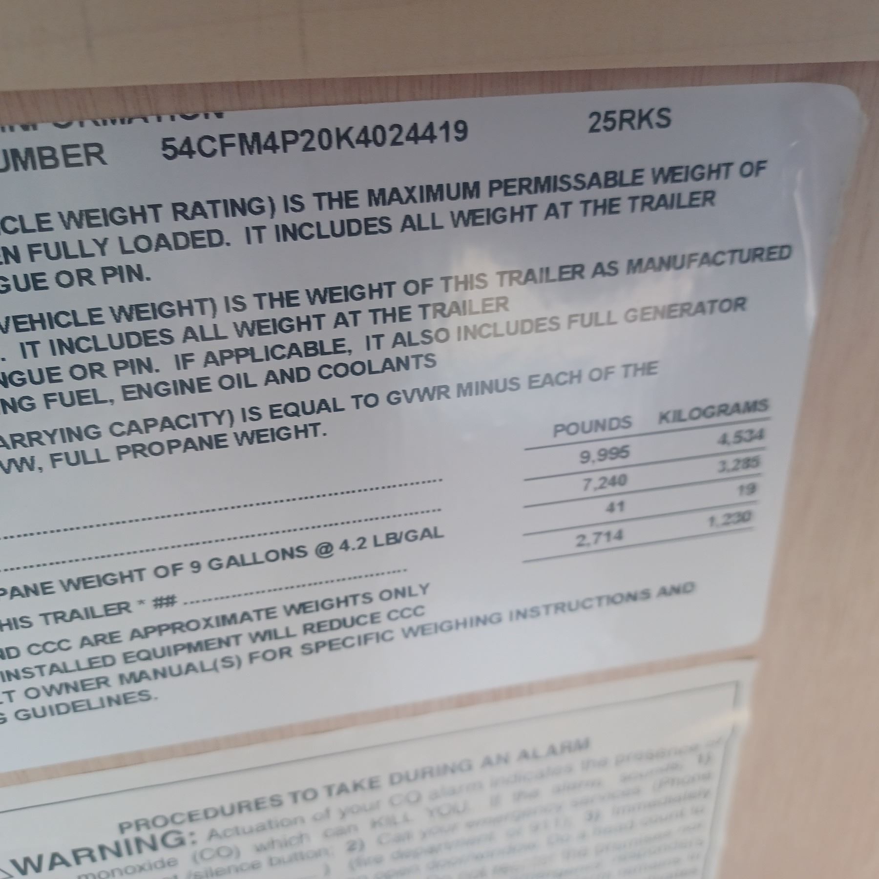SN 54CFM4P20K4024419 EMPTY WEIGHT 7240 LBS, GROSS WEIGHT 9995 LBS