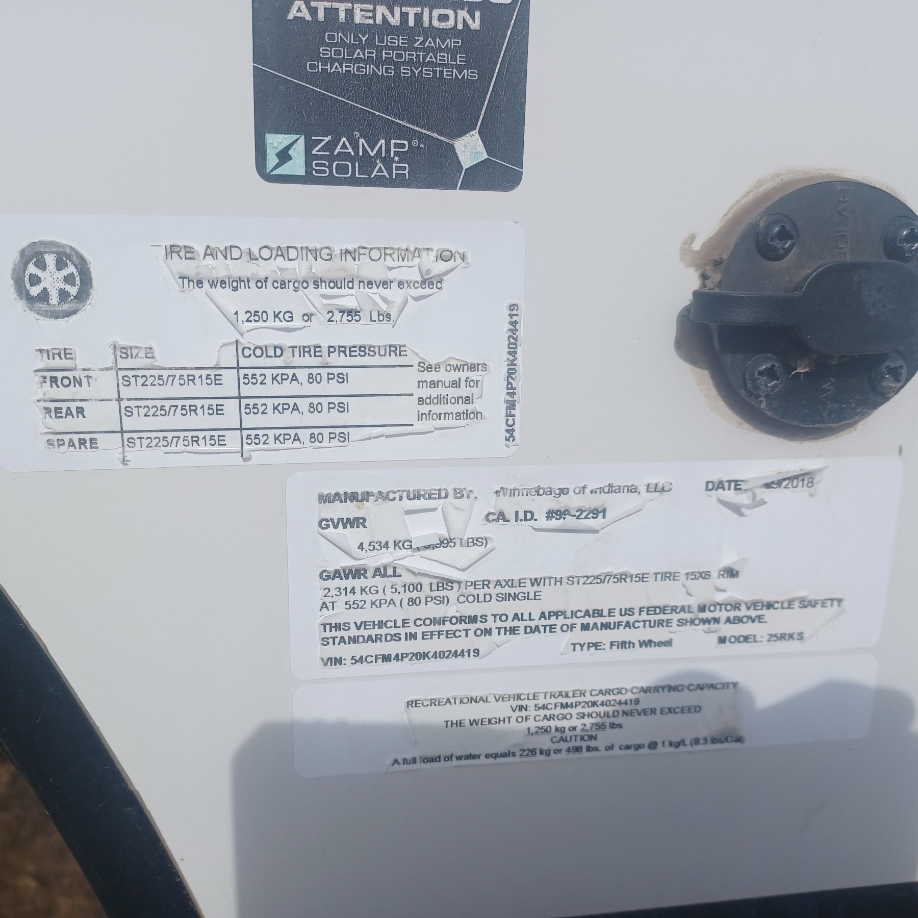 ESTATE 2019 WINNIPAGO 25RKS 5TH WHEEL RV WITH AWNING AND SLIDE OUT, HIGHEST BID SUBJET TO APPROVAL, BANK PAYOUT IS $42,000 PAYMENTS MAYBE ASSUMABLE. UNIT IS IN VERY GOOD CONDITION USED FOR ONE LONGER TRIP AND SEVERAL LOCAL WEEKEND TRIPS,