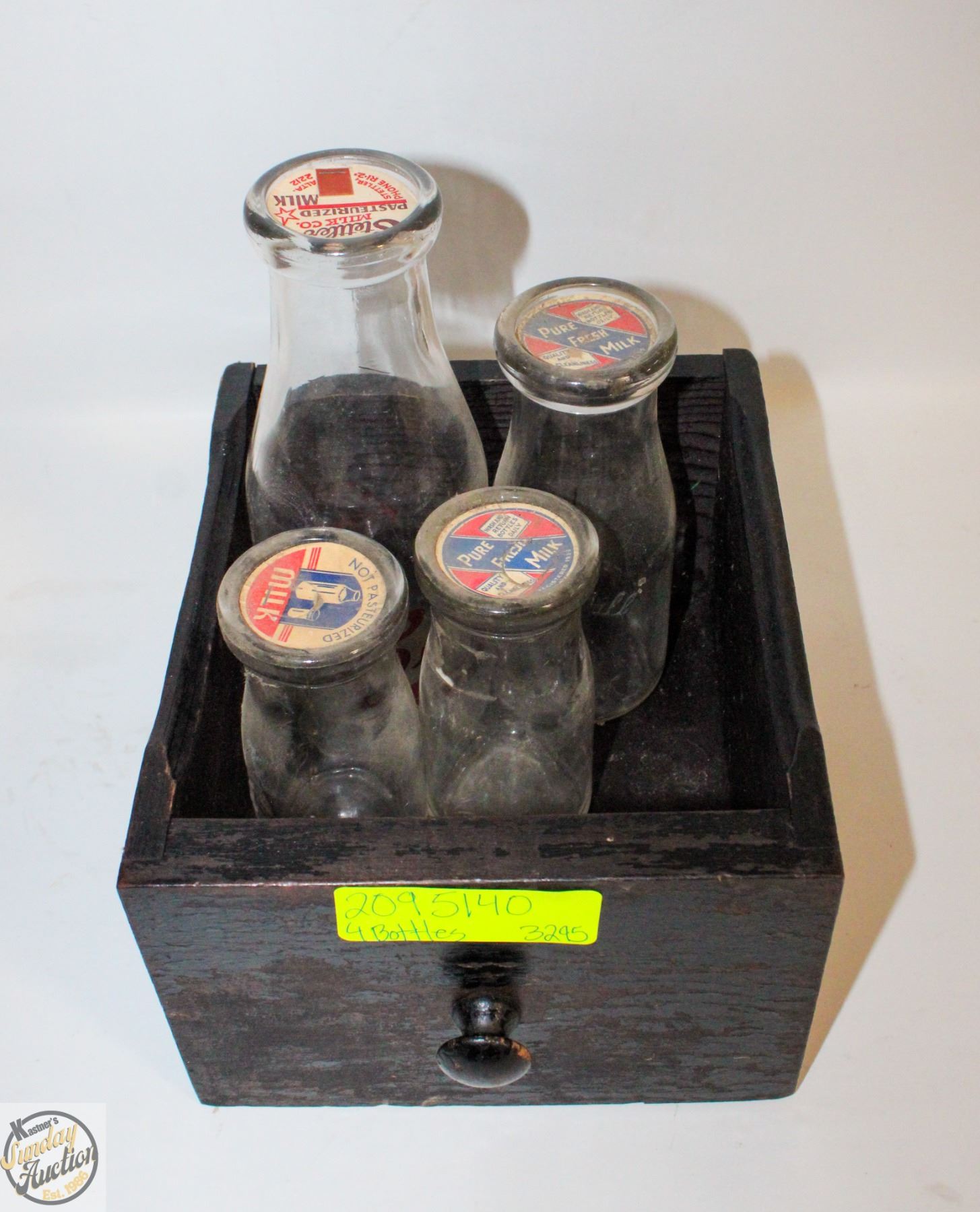ESTATE 4 ANTIQUE MILK BOTTLES WITH PAPER "CAPS"