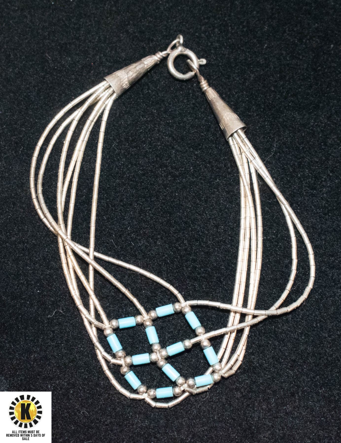 ESTATE 7" SILVER TONE & TURQUOISE BRACELET