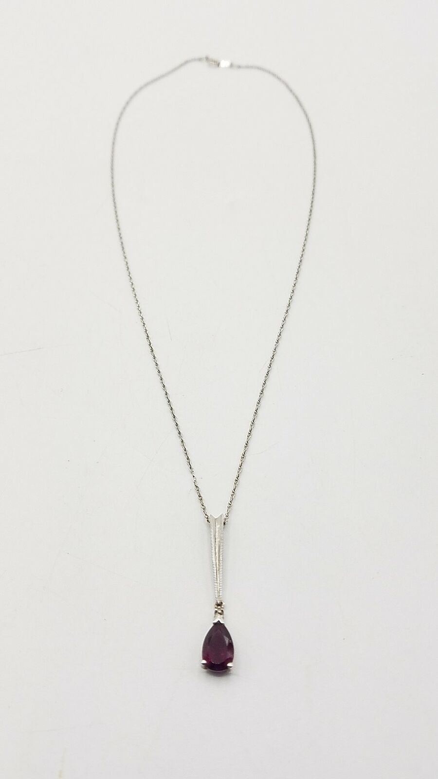 ESTATE 925 SILVER GARNET STONE NECKLACE 18.5" L