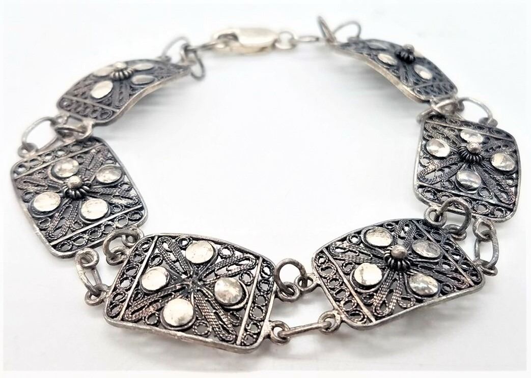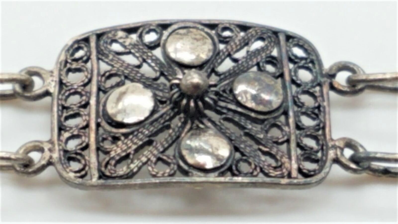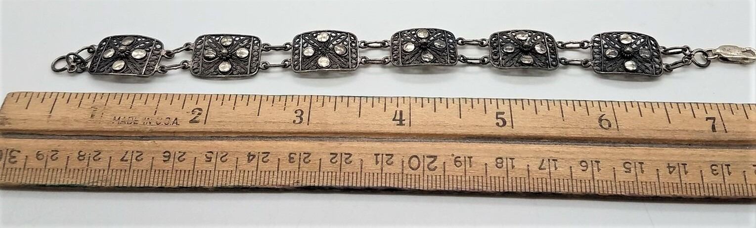 ESTATE 925 SILVER VINTAGE FILIGREE 7" BRACELET