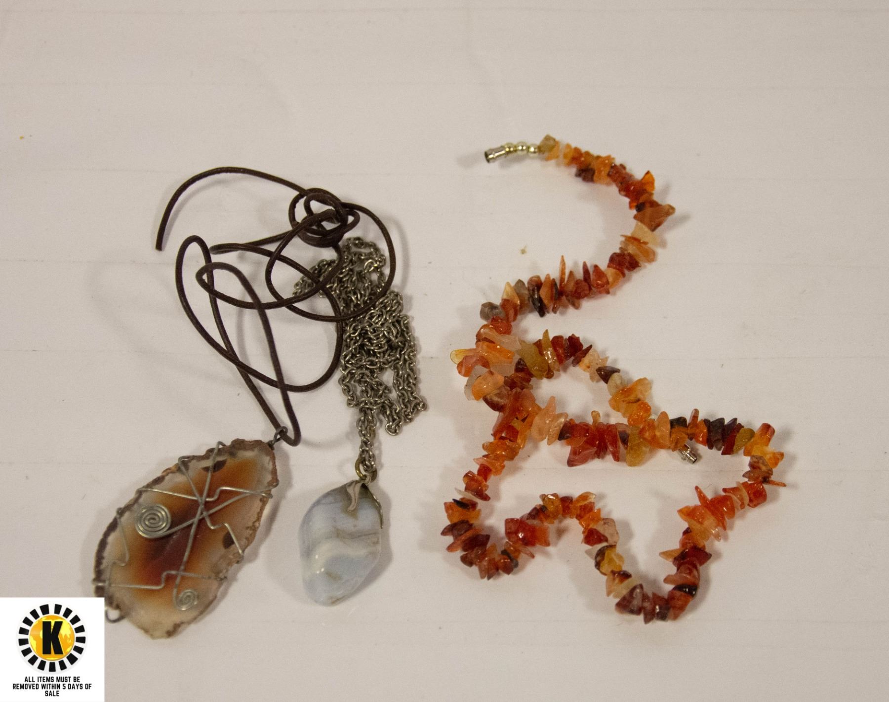 ESTATE AGATE & STONE NECKLACES TOGETHER-ESTATE