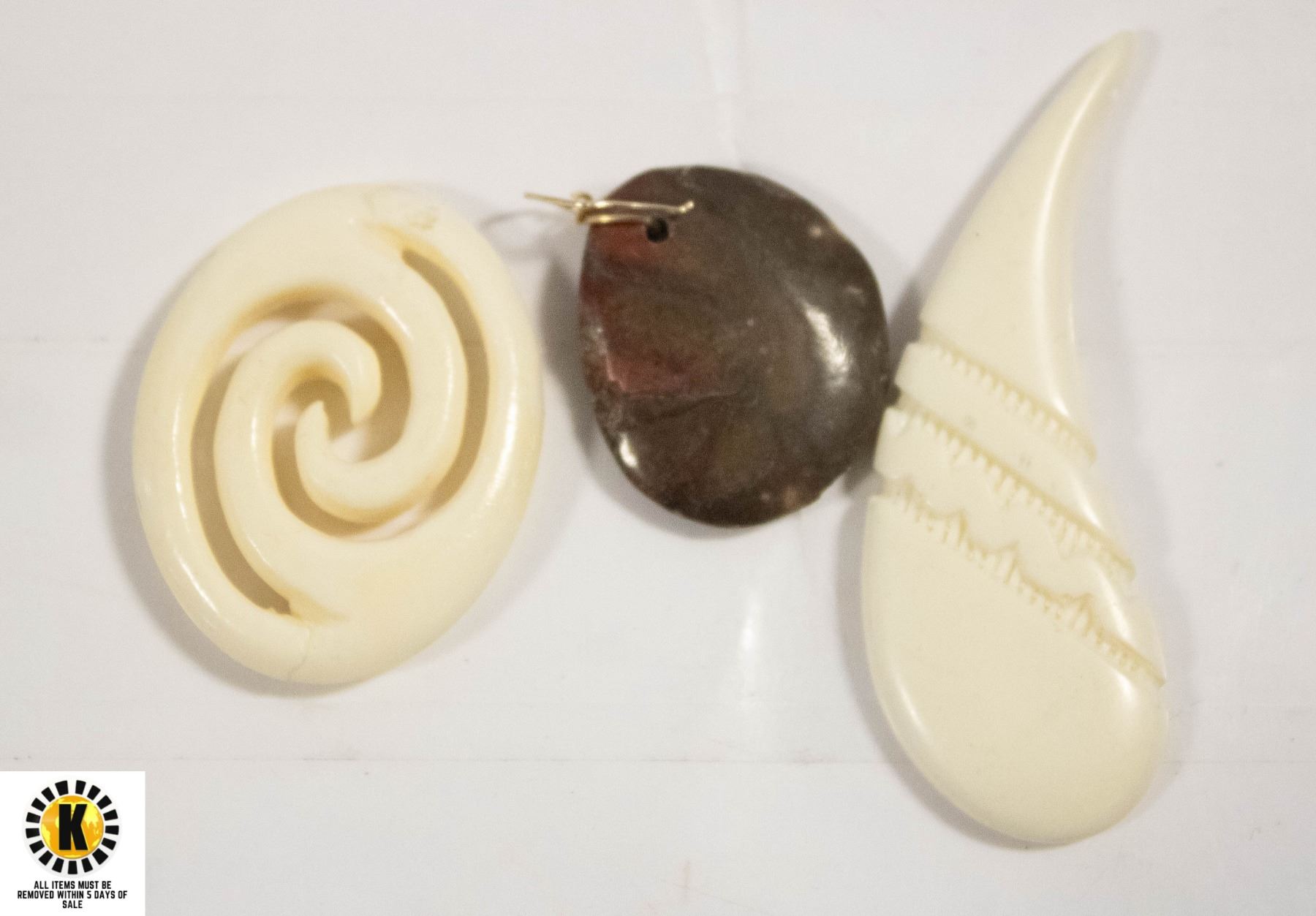 ESTATE AMMONITE & BONE PENDANTS TOGETHER IN BOX
