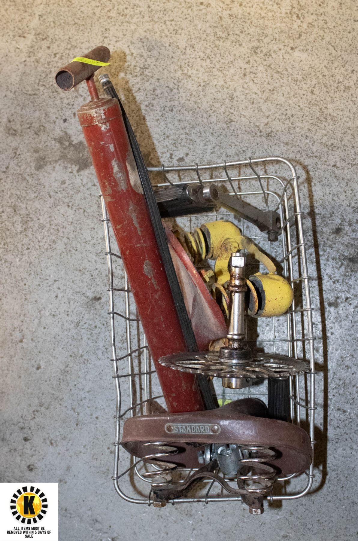ESTATE ANTIQUE BIKE BASKET, SEAT, & ANTIQUE BIKE A
