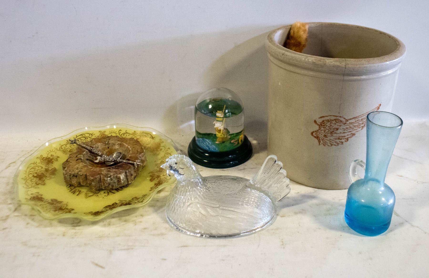 STONE ASH TRAY, TURKEY GLASS LID, SINGLE FLOWER BLUE GLASS HANDLED VASE & MORE **ALL ITEMS MUST BE REMOVED BY 5PM SATURDAY, JUNE 14TH 2025. ALL REMAINING ITEMS WILL BE SUBJECT TO A $6.00 PER DAY STORAGE CHARGE. ANY ITEMS REMAINING AFTER MONDAY, JUNE 30TH, 2025 WILL BE CONSIDERED FORFEITED. NO REFUNDS WILL BE ISSUED FOR FORFEITED ITEMS. TO SCHEDULE A PICK UP APPOINTMENT CLICK HERE