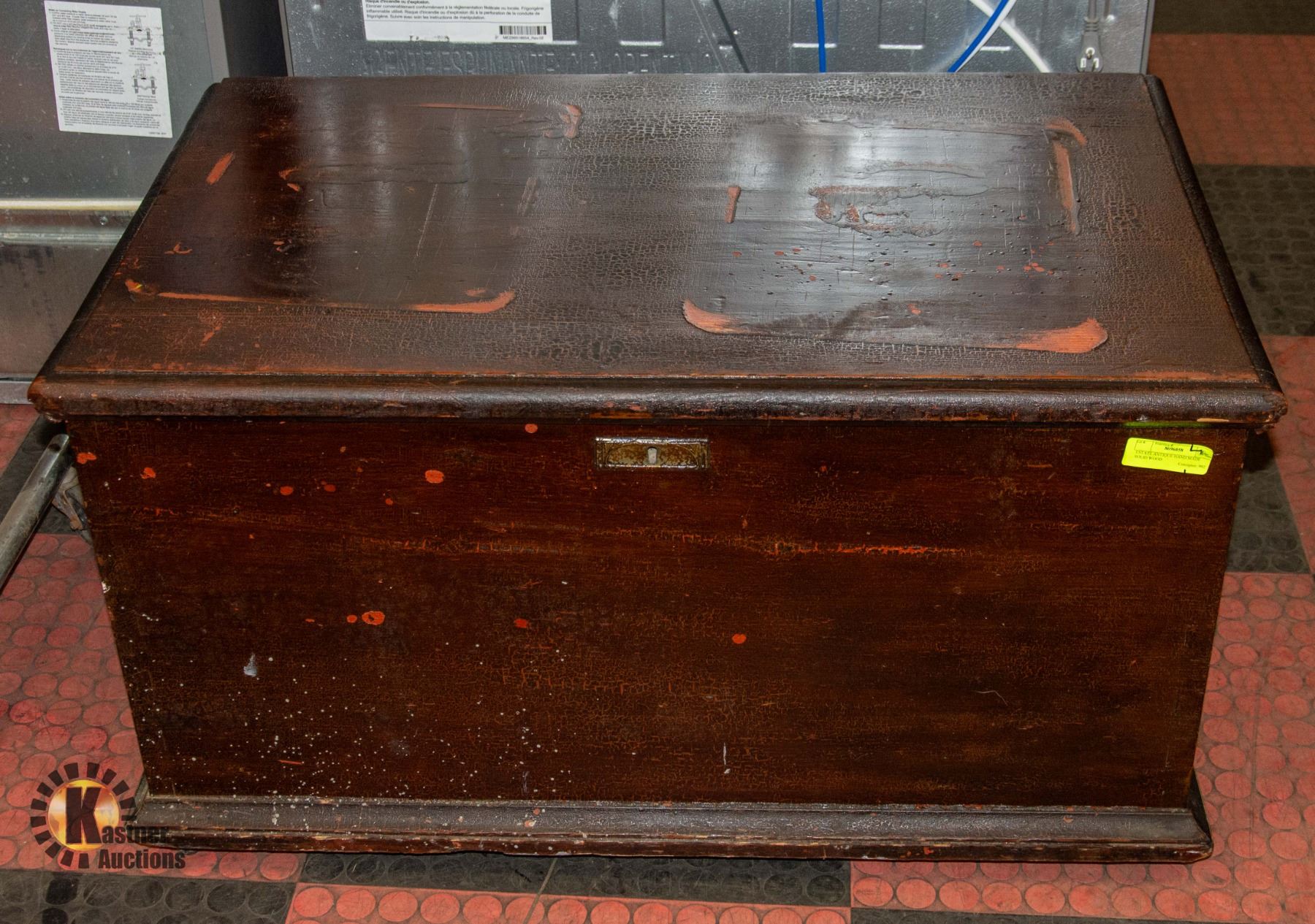 ROLLING STORAGE CHEST WITH HINGED LID, SIDE HANDLES AND LOCK, NO KEY (37"L X 22.5"W X 20.75"H) **ALL ITEMS MUST BE REMOVED BY 5PM SATURDAY, AUGUST 5TH 2023. ALL REMAINING ITEMS WILL BE SUBJECT TO A $6.00 PER DAY STORAGE CHARGE. ANY ITEMS REMAINING AFTER MONDAY, AUGUST 21ST, 2023 WILL BE CONSIDERED FORFEITED. NO REFUNDS WILL BE ISSUED FOR FORFEITED ITEMS. TO SCHEDULE A PICK UP APPOINTMENT CLICK HERE
