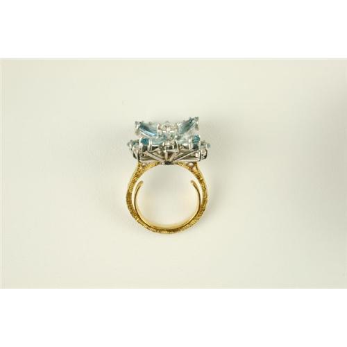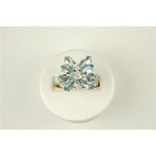 This AQUAMARINE and DIAMOND SUITE came to us from a VERY FINE ESTATE. The Ring is 14k Gold and it features 8 FINE AQUAMARINES = 1.50 CARATS accented by 5 FINE DIAMONDS = .75 CARATS! This ring is a Size 5 and it can be resized. The matching Earrings are 14k White Gold and each Earring is set with 5 FINE AQUAMARINES and 6 FINE DIAMONDS. The DIAMOND Total Weight of the Earrings = 1.00 CARAT and the Aquamarine Total Weight = 1.00 CARAT! The Earrings measure 3/4" across the widest part and they ARE outstanding!