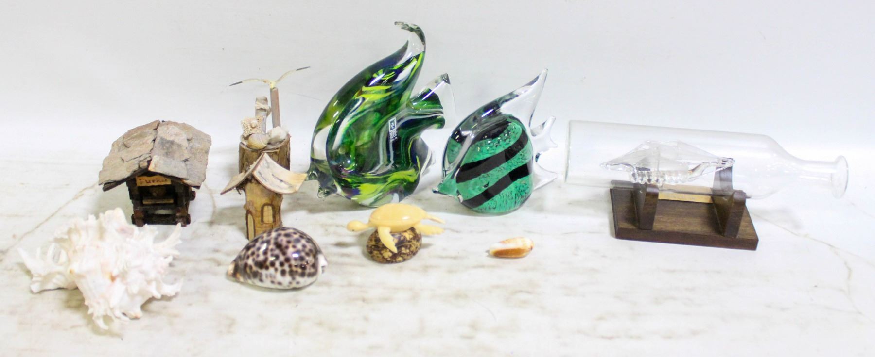 ESTATE ART GLASS FISH, ART GLASS SHIP IN A