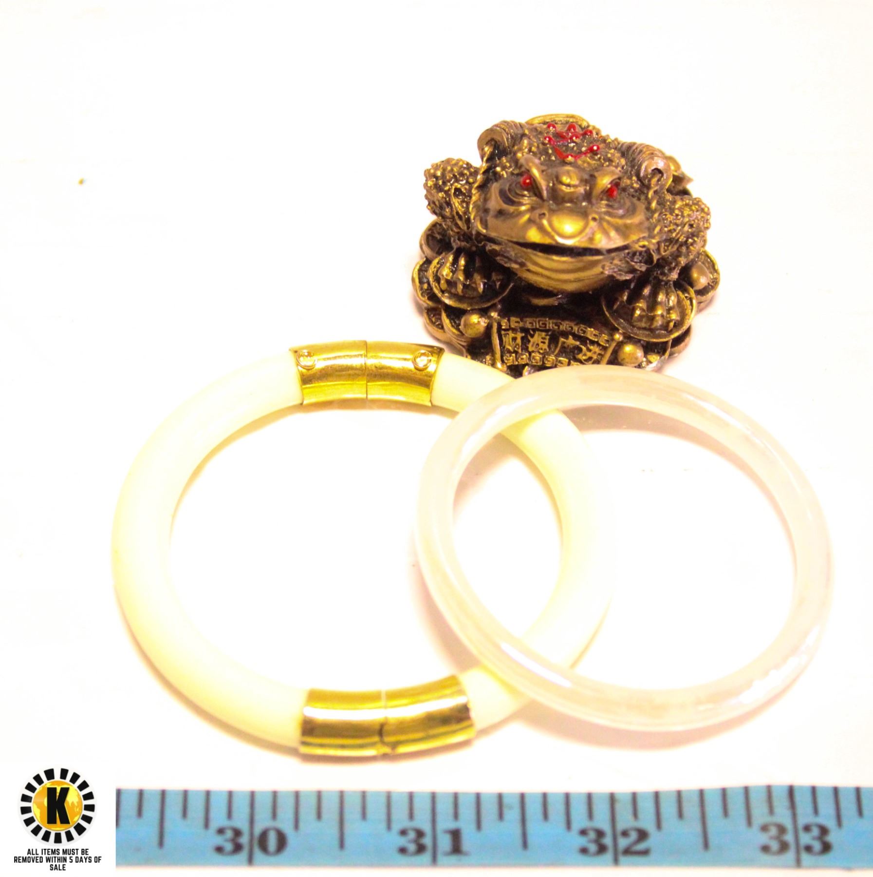 ESTATE ASIAN BANGLES & LUCKY MONEY FROG FIGURINE
