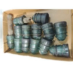 BOX LOT 12 ANTIQUE GLASS INSULATORS ELECTRIC