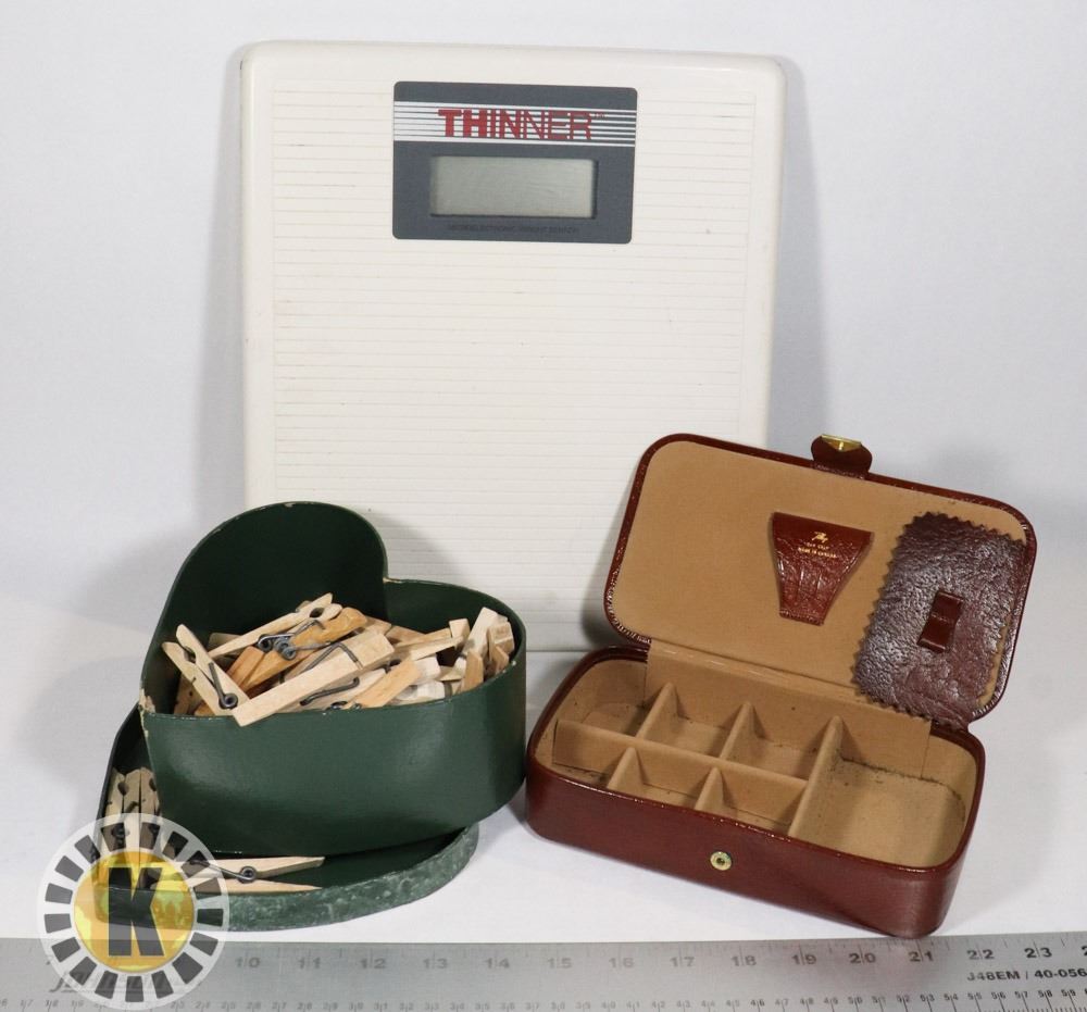 ESTATE BATHROOM SCALE, CLIPS IN STORAGE BOX, & MOR