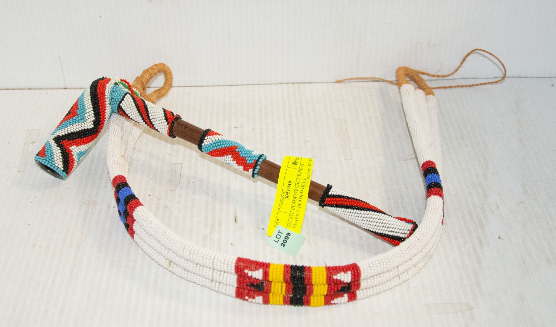 ESTATE BEADED PEACE PIPE & HEAVILY BEADED BELT