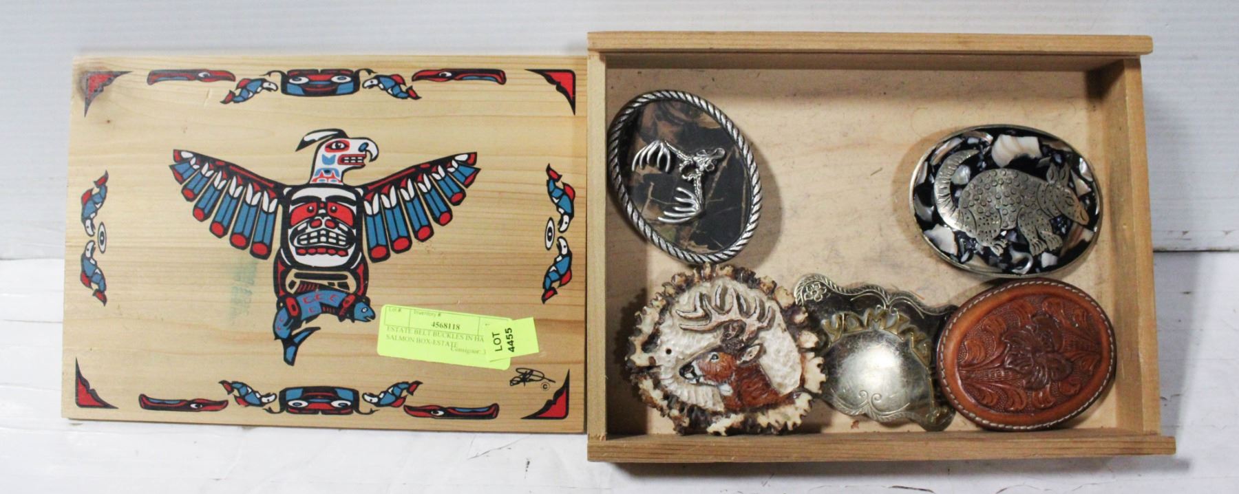 ESTATE BELT BUCKLES IN HAIDA SALMON BOX-ESTATE