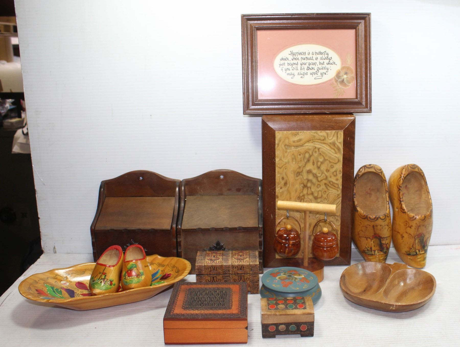 ESTATE- BOX LOT OF VINTAGE WOOD ITEMS- 13 PIECES