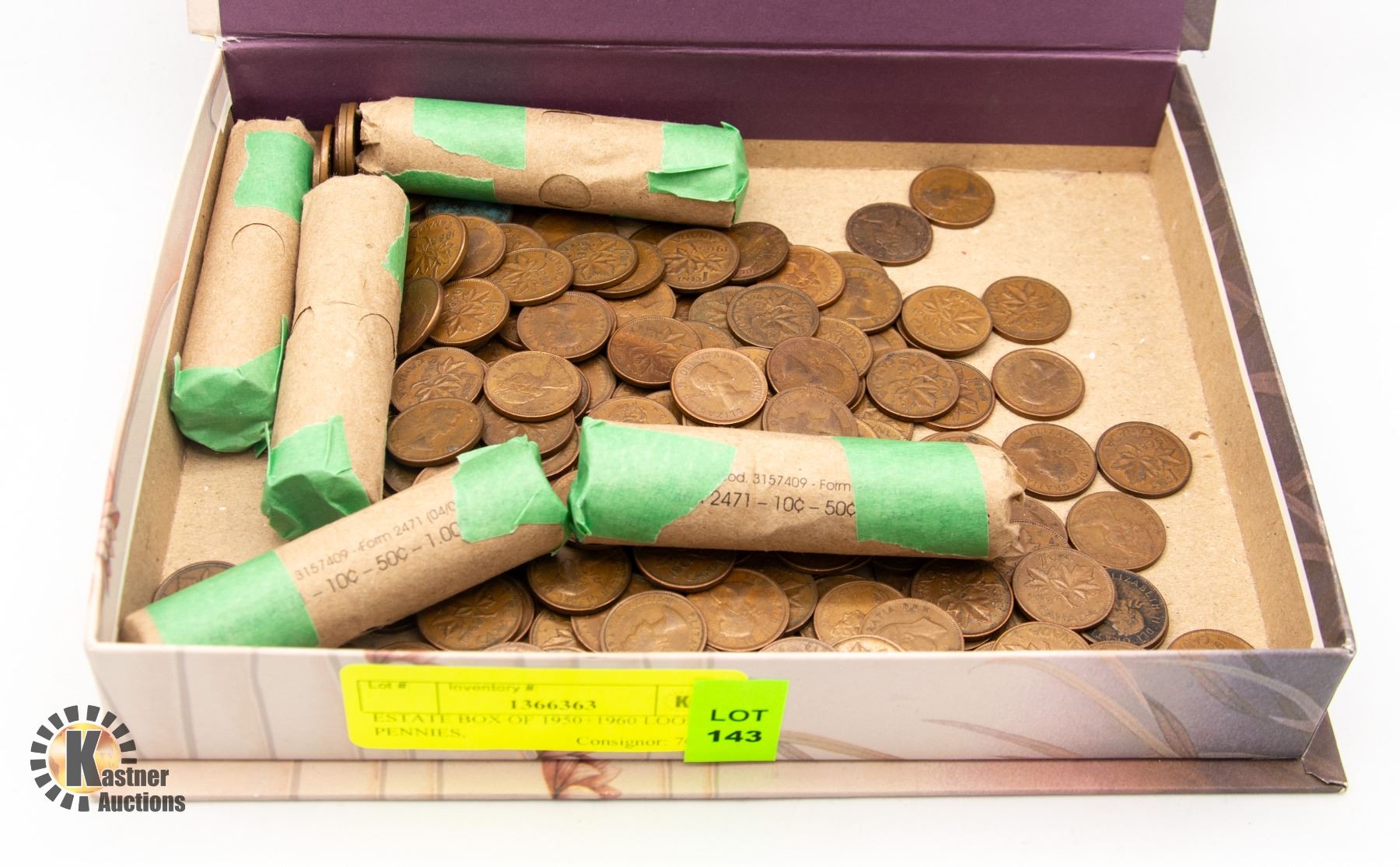 ESTATE BOX OF 1950+1960 LOOSE PENNIES,