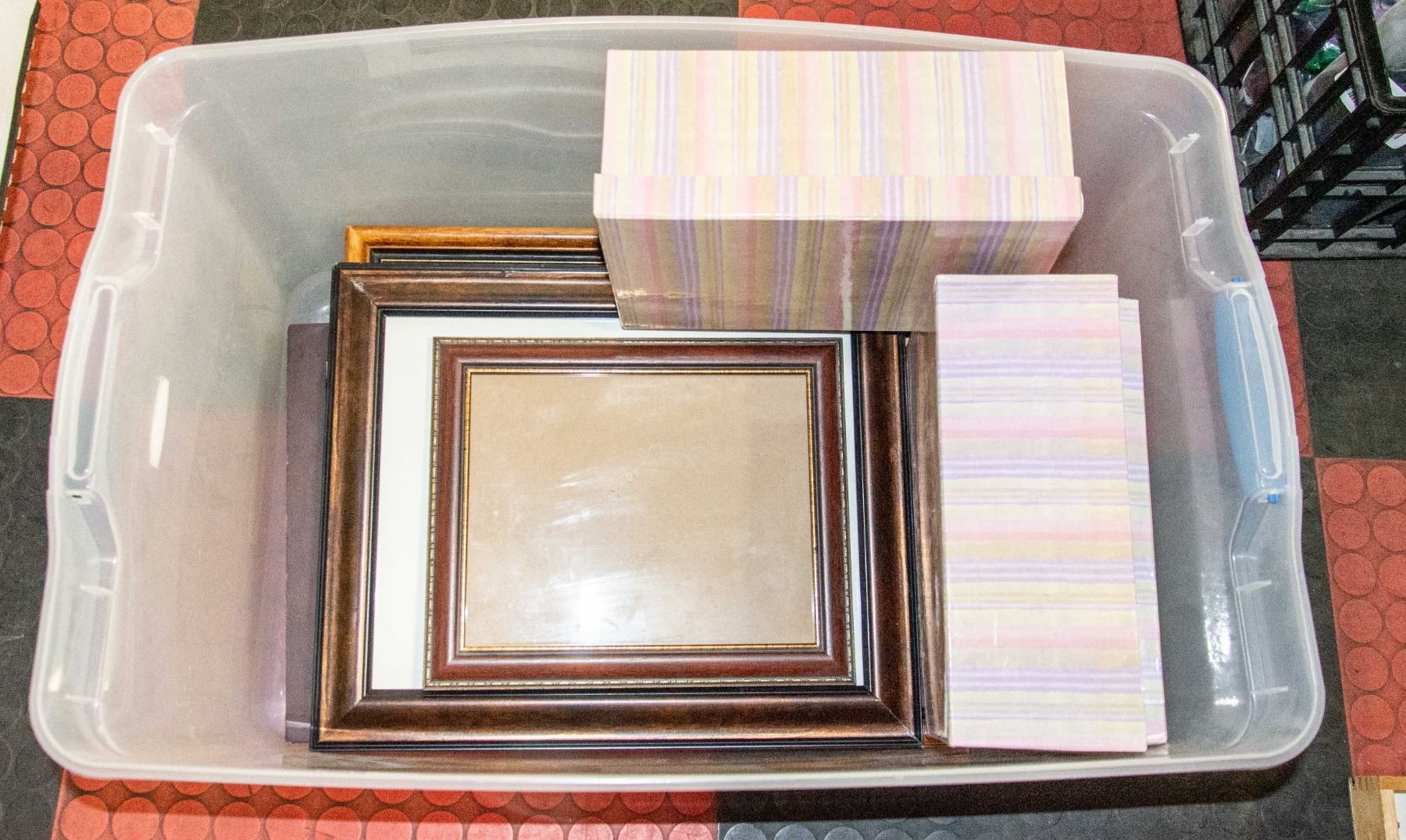 ESTATE BOX OF FRAMES, PICTURE BOXES + LARGE FRAME