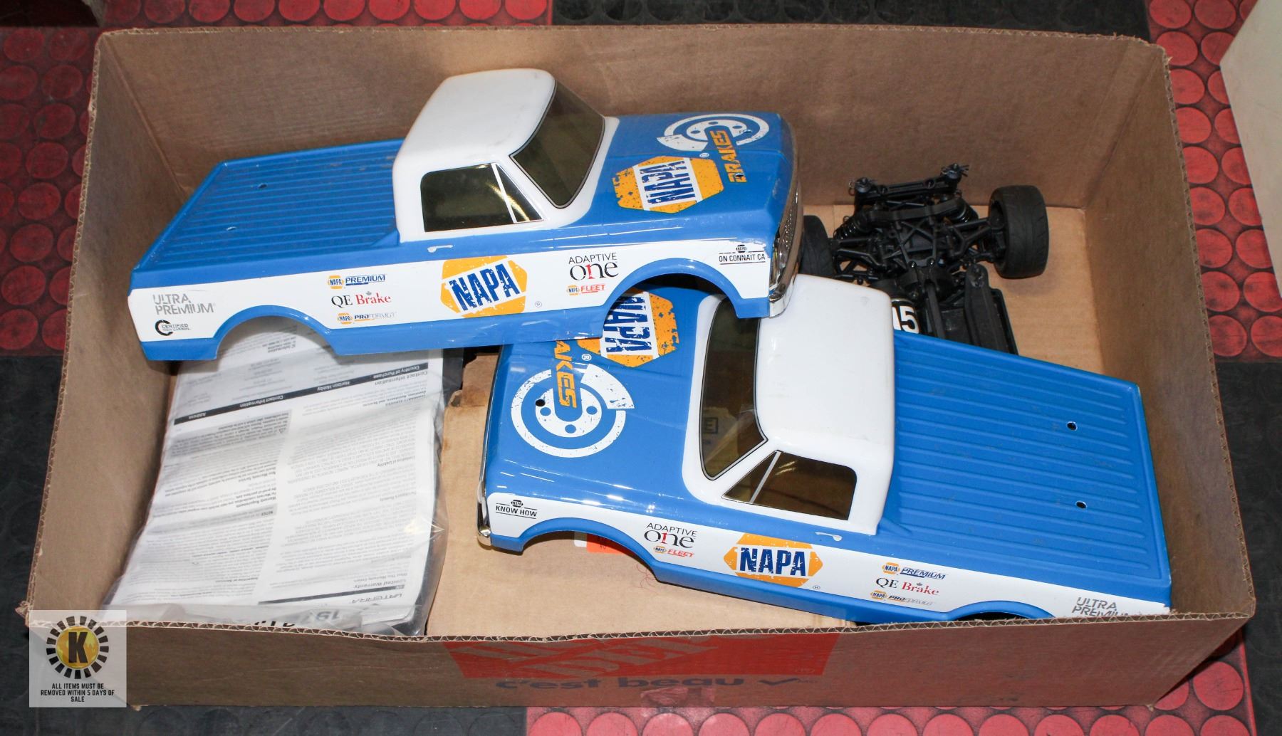 C10 "NAPA" REMOTE CONTROL TRUCKS INCL. TWO REMOTES, 2 CHARGERS AND 2 BATTERIES, 2 OWNERS MANUALS. UNTESTED **ALL ITEMS MUST BE REMOVED BY 5PM SATURDAY, APRIL 3RD 2025. ALL REMAINING ITEMS WILL BE SUBJECT TO A $6.00 PER DAY STORAGE CHARGE. ANY ITEMS REMAINING AFTER MONDAY, MAY 19TH 2025 WILL BE CONSIDERED FORFEITED. NO REFUNDS WILL BE ISSUED FOR FORFEITED ITEMS. TO SCHEDULE A PICK UP APPOINTMENT CLICK HERE