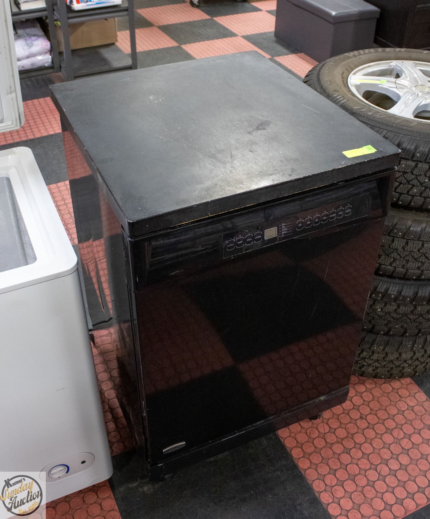 4 SWIVEL CASTORS, BLACK, LARGE WOOD TOP & STAINLESS STEEL TUB, PUSH BUTTON CONTROLS (23.5"L X 25.5"W X 36"H) (WORKING) **ALL ITEMS MUST BE REMOVED BY 5PM SATURDAY, APRIL 4TH 2026. ALL REMAINING ITEMS WILL BE SUBJECT TO A $6.00 PER DAY STORAGE CHARGE. ANY ITEMS REMAINING AFTER MONDAY, APRIL 27TH 2026 WILL BE CONSIDERED FORFEITED. NO REFUNDS WILL BE ISSUED FOR FORFEITED ITEMS. TO SCHEDULE A PICK UP APPOINTMENT CLICK HERE
