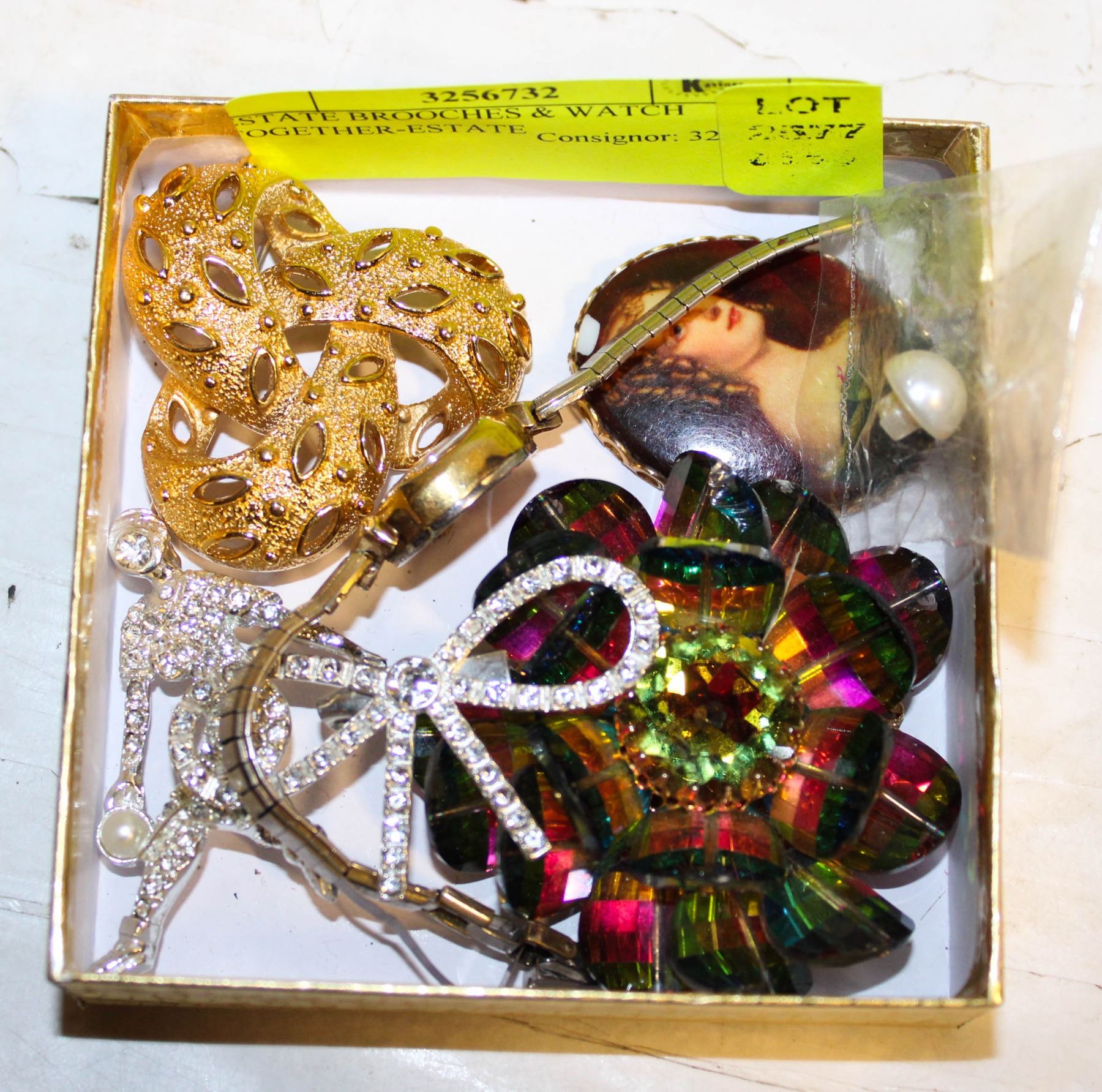 ESTATE BROOCHES & WATCH TOGETHER-ESTATE