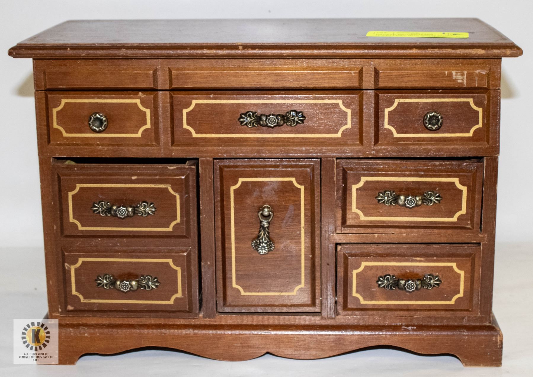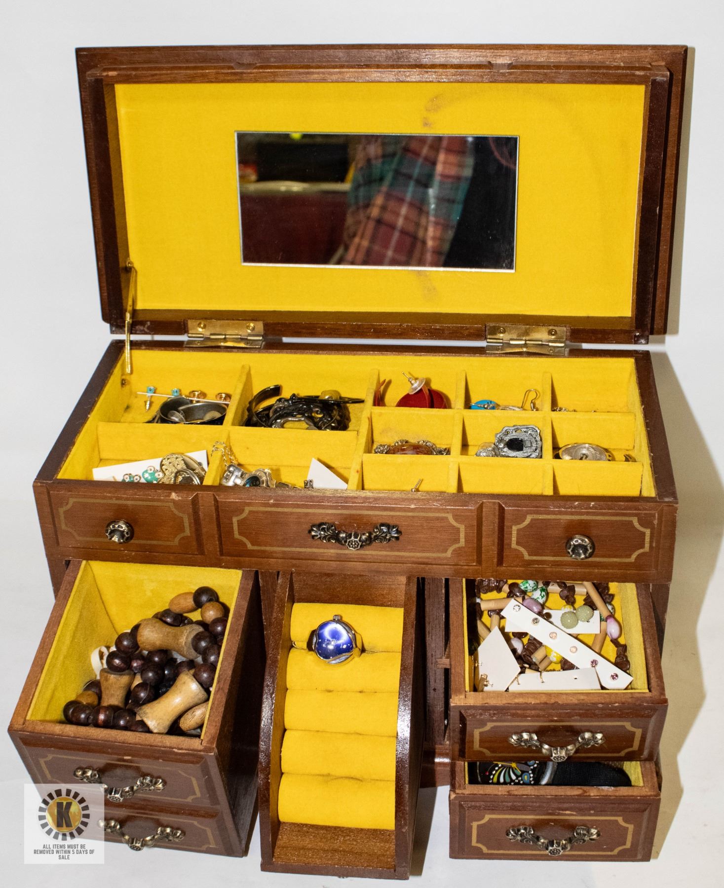 VARIOUS DRAWERS, TOP STORAGE & RING STORAGE DRAWER FULL OF JEWELLERY - CHARMS, EARRINGS, NECKLACES, WATCHES, PINS, PENDANTS, ETC. **ALL ITEMS MUST BE REMOVED BY 5PM SATURDAY, APRIL 12TH 2025. ALL REMAINING ITEMS WILL BE SUBJECT TO A $6.00 PER DAY STORAGE CHARGE. ANY ITEMS REMAINING AFTER MONDAY, APRIL 28TH 2025 WILL BE CONSIDERED FORFEITED. NO REFUNDS WILL BE ISSUED FOR FORFEITED ITEMS. TO SCHEDULE A PICK UP APPOINTMENT CLICK HERE