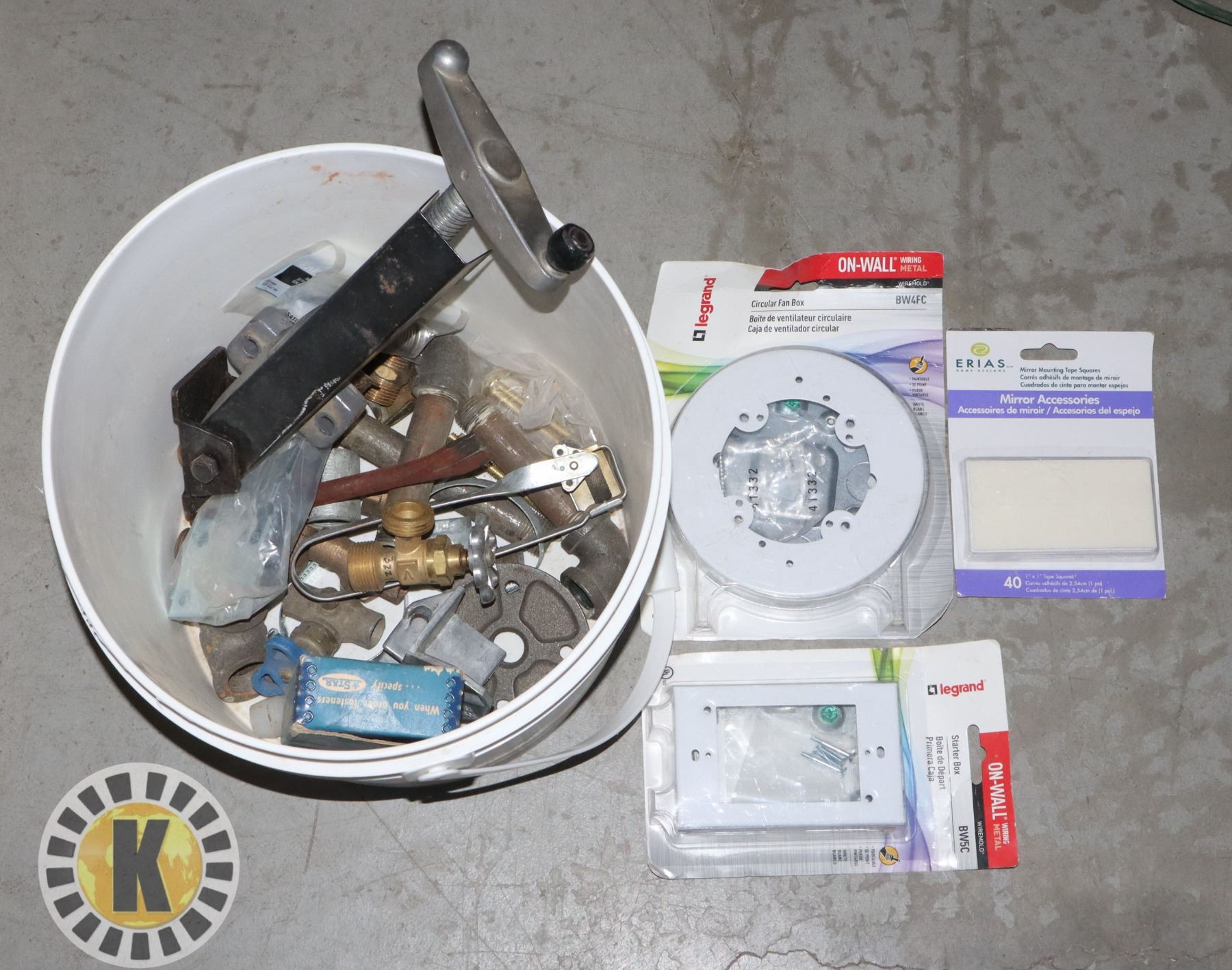 ESTATE BUCKET OF ASSORTED PIPE FIXTURES AND MORE