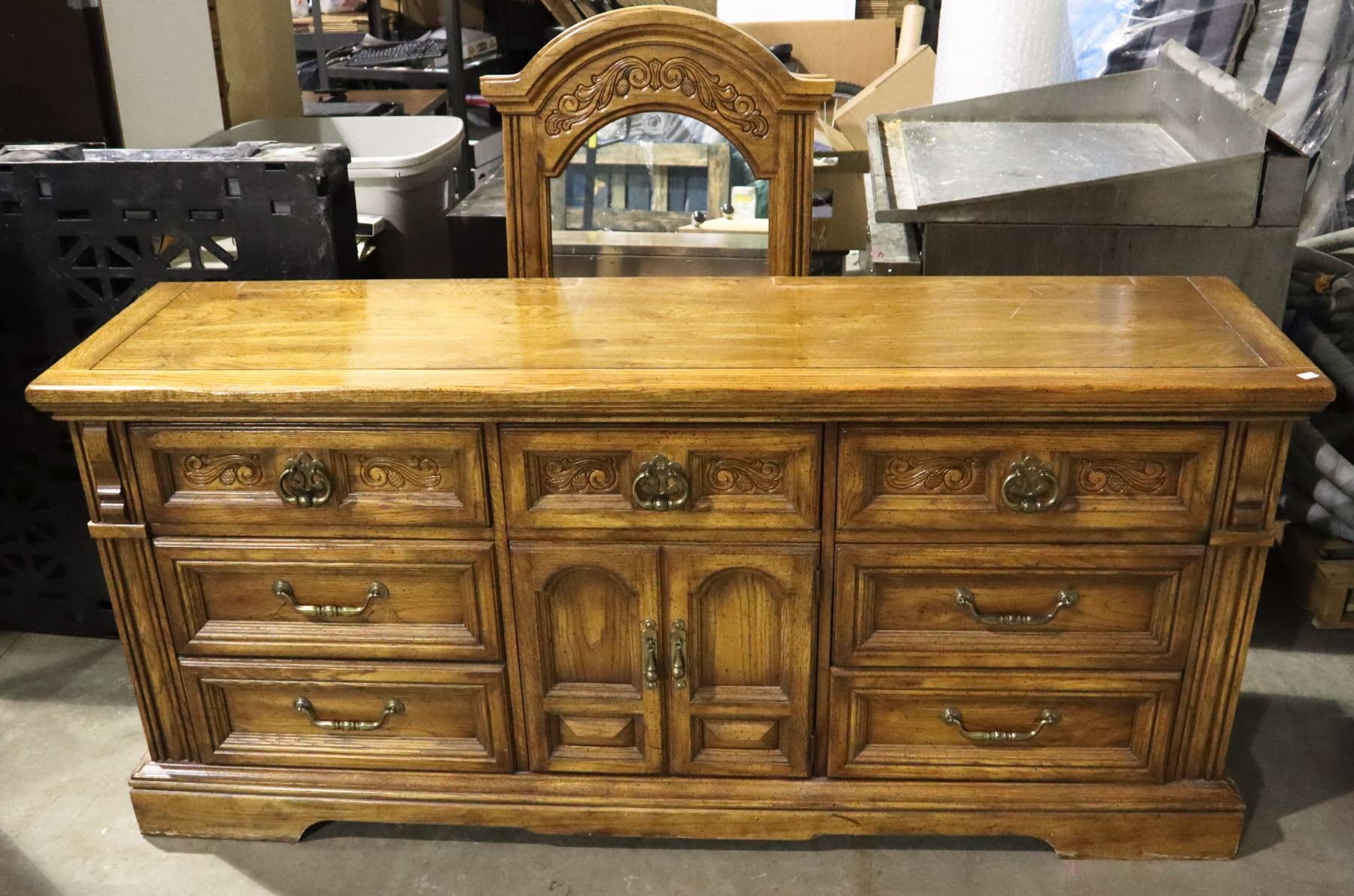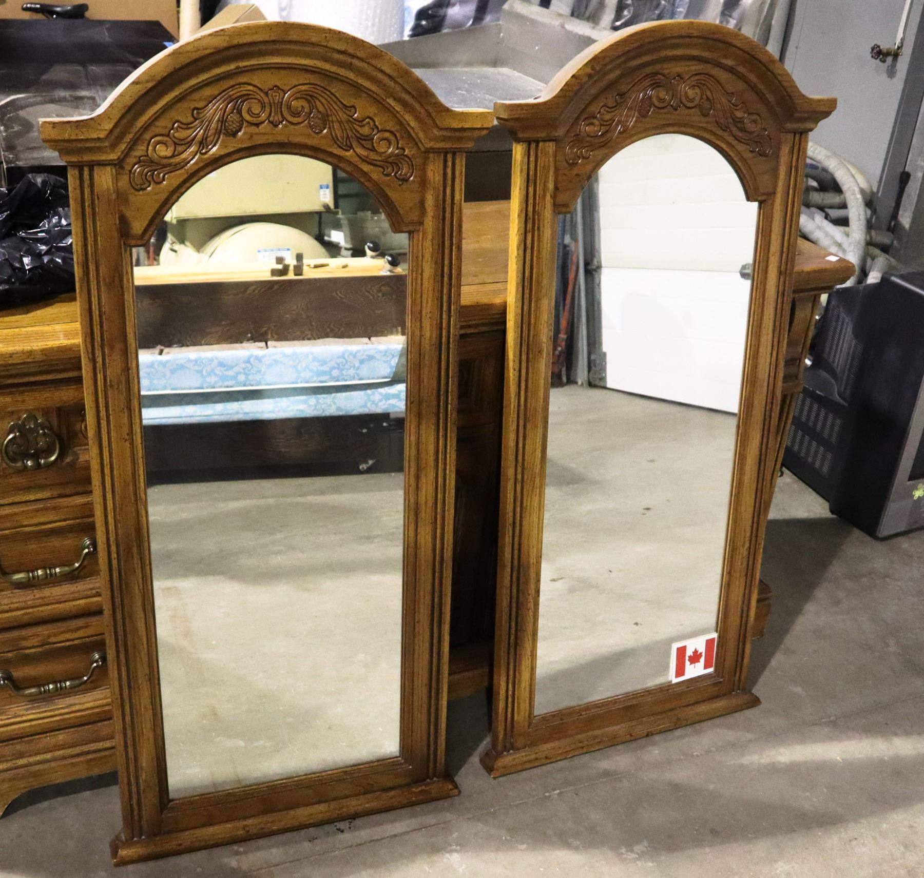WITH MIRRORS. VERY GOOD OVERALL CONDITION. APPROX 32.5" TALL X 72" WIDE X 19" DEEP. MIRRORS ARE NOT CURRENTLY ATTACHED. MATCHES ARMOIRE (PREVIOUS LOT)