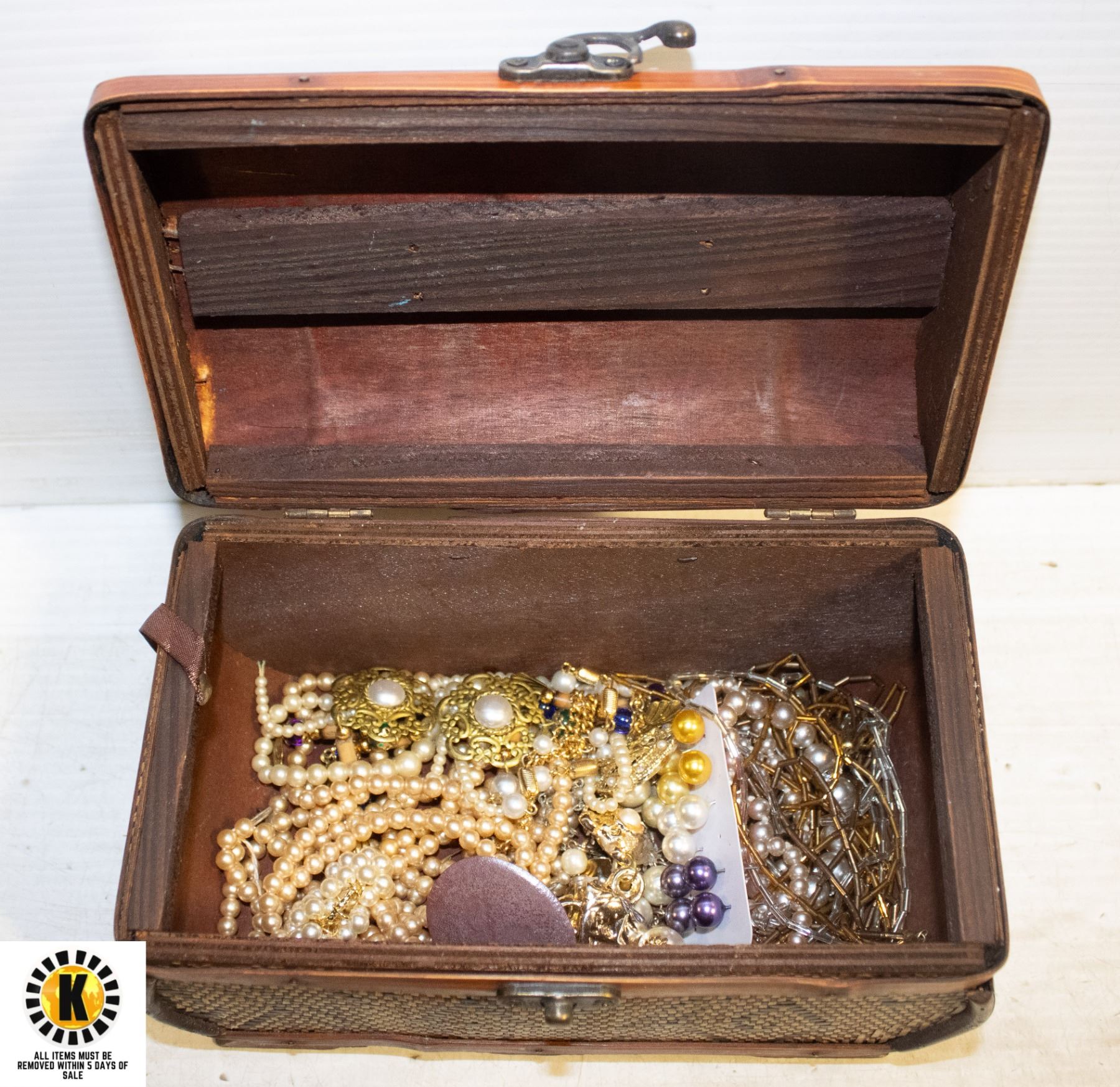 ESTATE CAMEO AND PEARLY JEWLERY IN TREASURE BOX