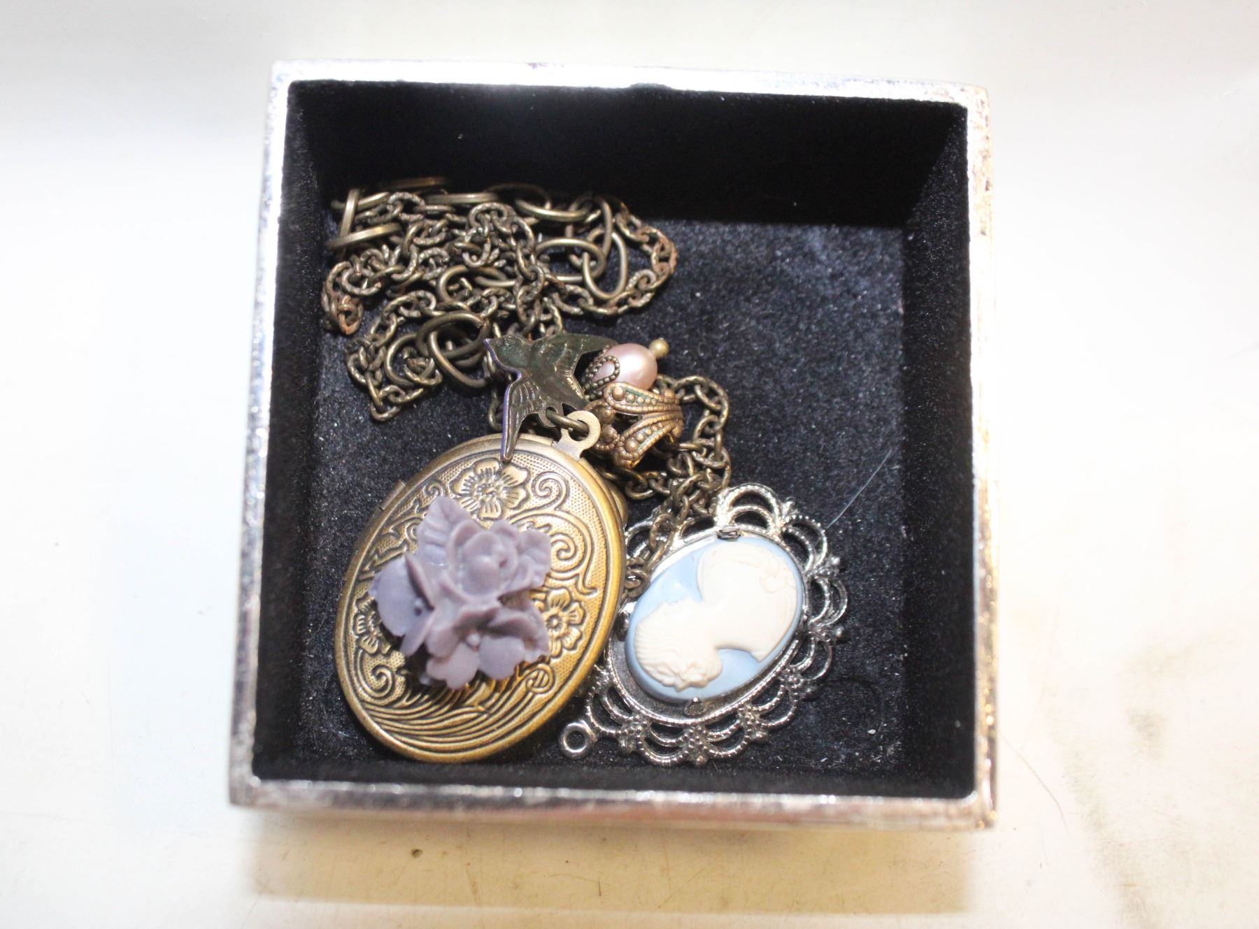ESTATE CAMEO & LOCKET NECKLACE IN BOX-ESTATE